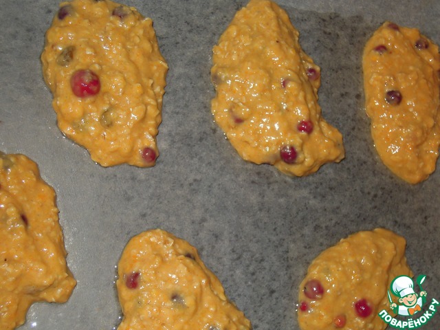 Столовой ложкой выложить тесто на противень, формируя будущие печенья на небольшом расстоянии друг от друга.