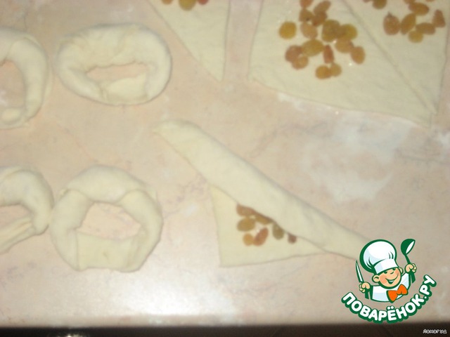 Круассаны с изюмом из слоеного теста