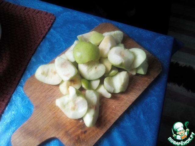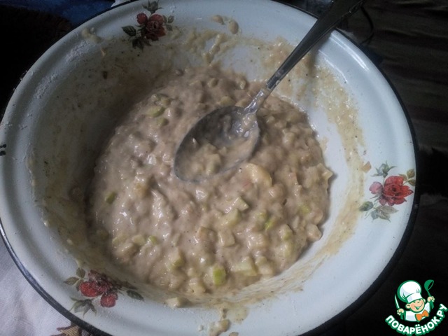 В этот раз я делала с яблоками и корицей. На фото то количество, которое я взяла на указанную порцию теста. Можно использовать любые фрукты или делать вообще без них.