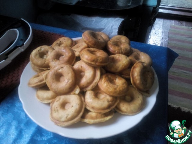 | Очень простой и быстрый рецепт вкусных коржиков! Моя бутербродница имеет несколько разных пластин, поэтому я выбрала форму для пончиков. У кого такой нет, можно использовать стандартную форму для сендвичей или бельгийских вафель. |
