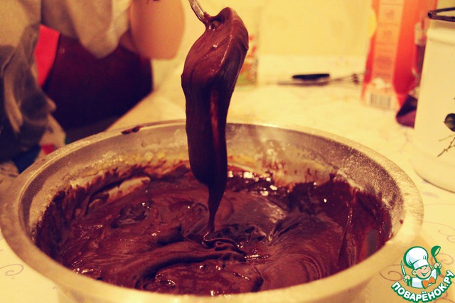 3. Добавьте в яичную смесь остывшую смесь масла с шоколадом.