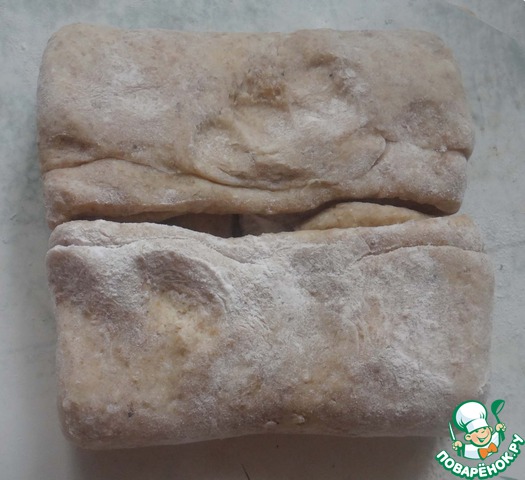 После чего сложил его в четыре слоя и снова раскатал. Операцию повторил 5 раз.