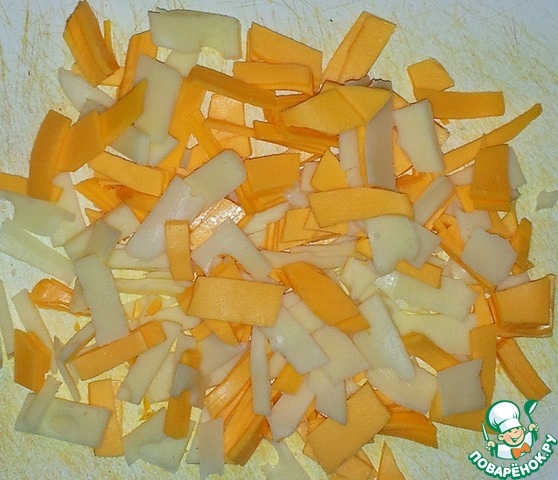Нарезала сыр, чтобы потом посыпать им верх лепёшек.