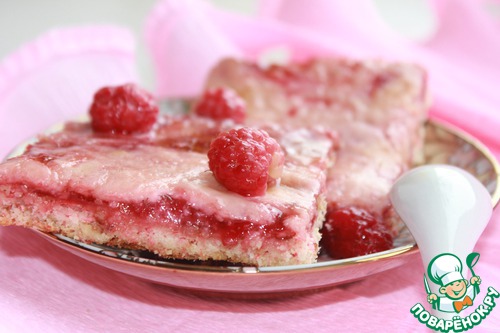 Достаньте форму с тестом из холодильника и размажьте по ее поверхности малиновый джем. Затем аналогично намажьте сверху творожную смесь. Поставьте в разогретую до 180 градусов духовку выпекать минут на 20. Достав из духовки, дайте полностью остыть. Разрежьте на порционные квадратики и подавайте к столу. Приятного вам аппетита!!