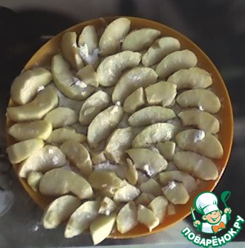 Яблоки очистить, нарезать ломтиками и посыпать сахаром. Оставить на 8 минут.