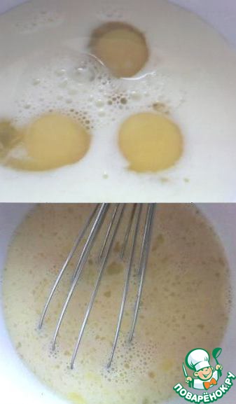 Яйца, сахар и молоко смешиваем. После чего ненадолго укладываем в смесь ломтики хлеба.