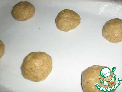 Скатать из теста шарики диаметром около 3 см и выложить на подготовленный противень на достаточном расстоянии друг от друга.
