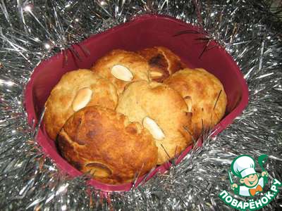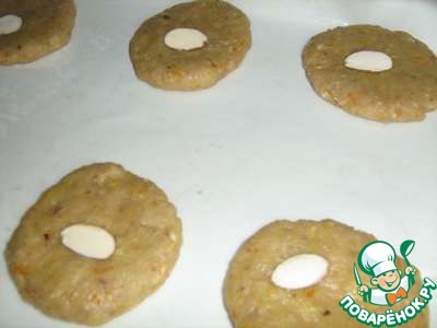 Положить в центр каждого печенья по половинке миндаля. Выпекать около 10 минут при температуре 150 градусов, пока изделия не поднимутся и не станут золотистыми.