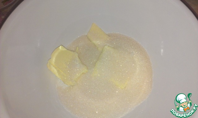 Размягченное сливочное масло растираем с сахаром до белого цвета.