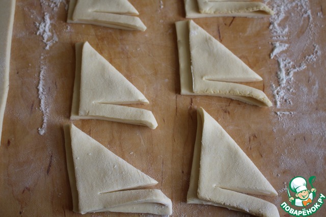Делаем надрезы острым ножом отступив от края 0,5-1 см к прямому углу, но не доводя разрез до конца (на фото видно).