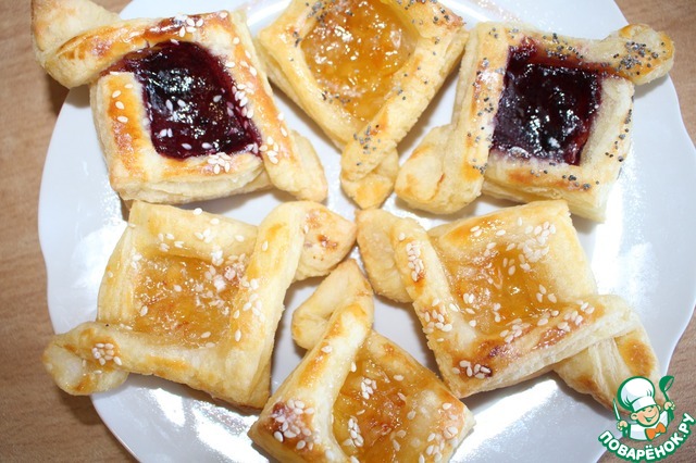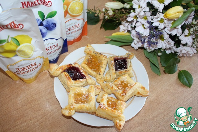 | Вариантов оформления выпечки из теста, тем более слоеного, великое множество. Я решила предложить Вашему вниманию "колодцы" из слоеного теста с фруктовым джемом "Махеев". Быстро, просто и, самое главное, вкусно! |