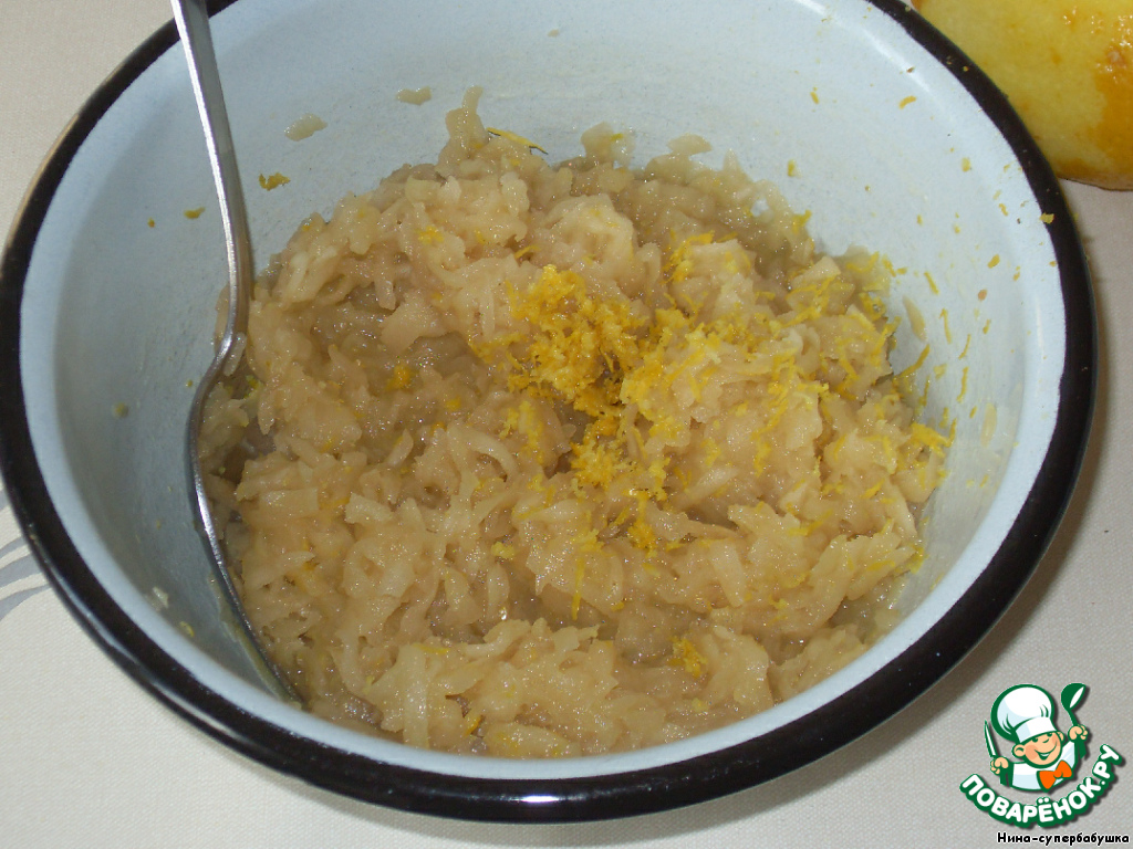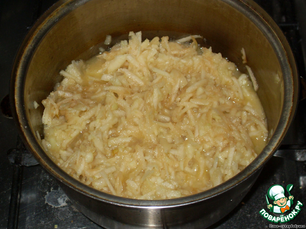 Подготовить продукты для начинки. Яблоки нарезать на четвертинки и затем очистить от кожицы и семенной коробочки. Натереть на крупной терке.