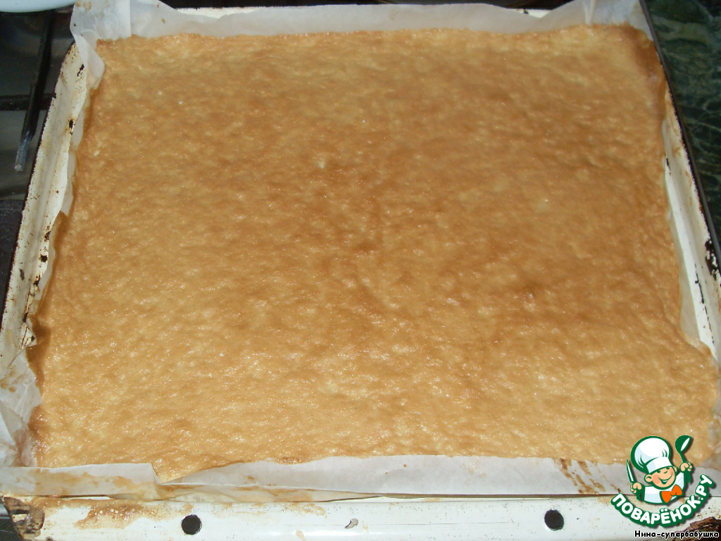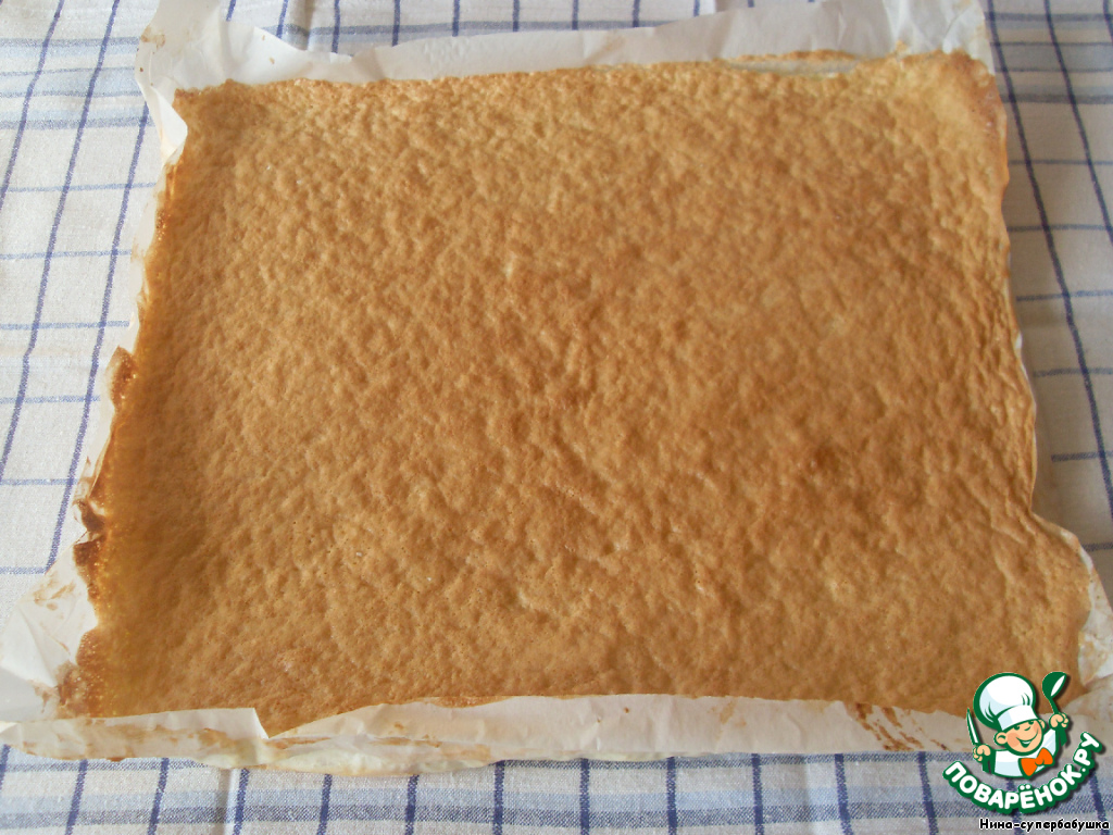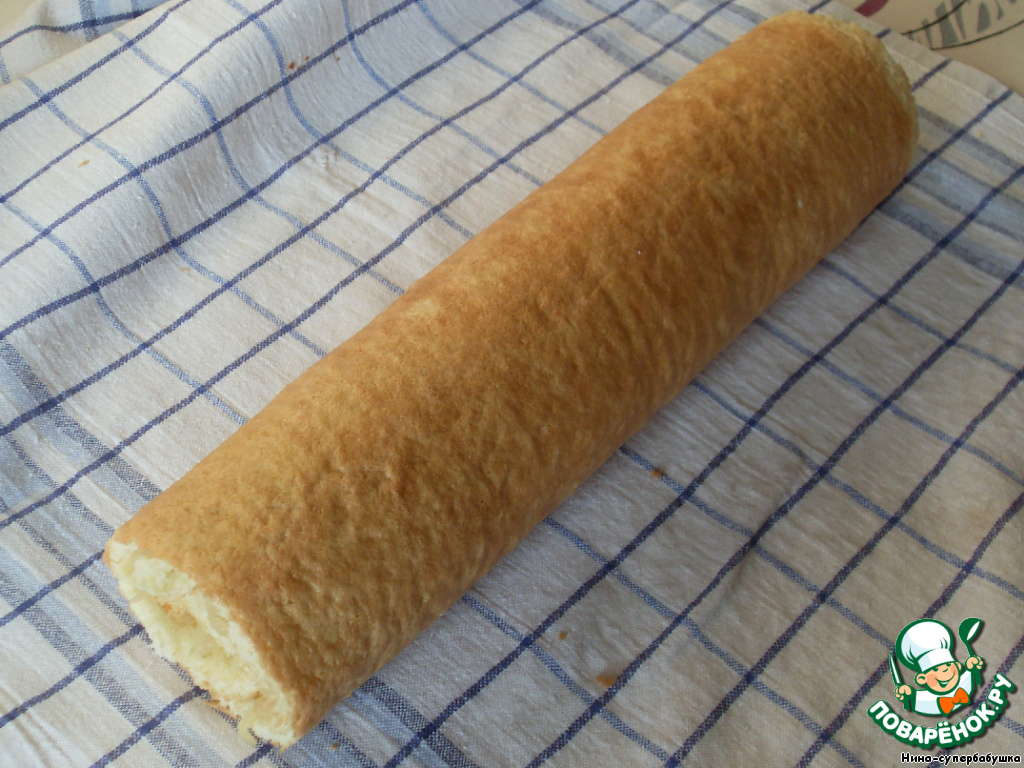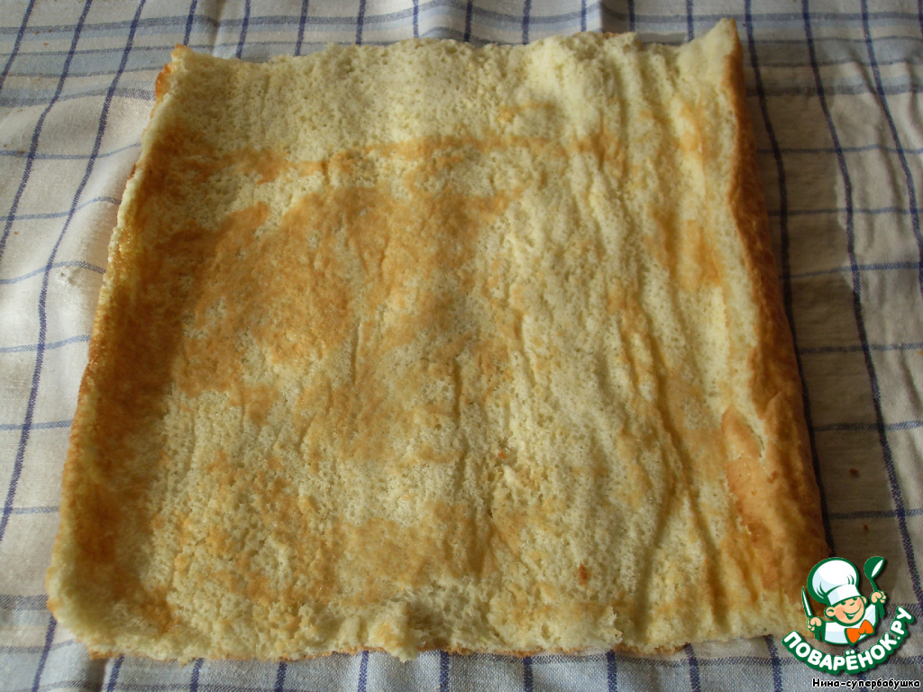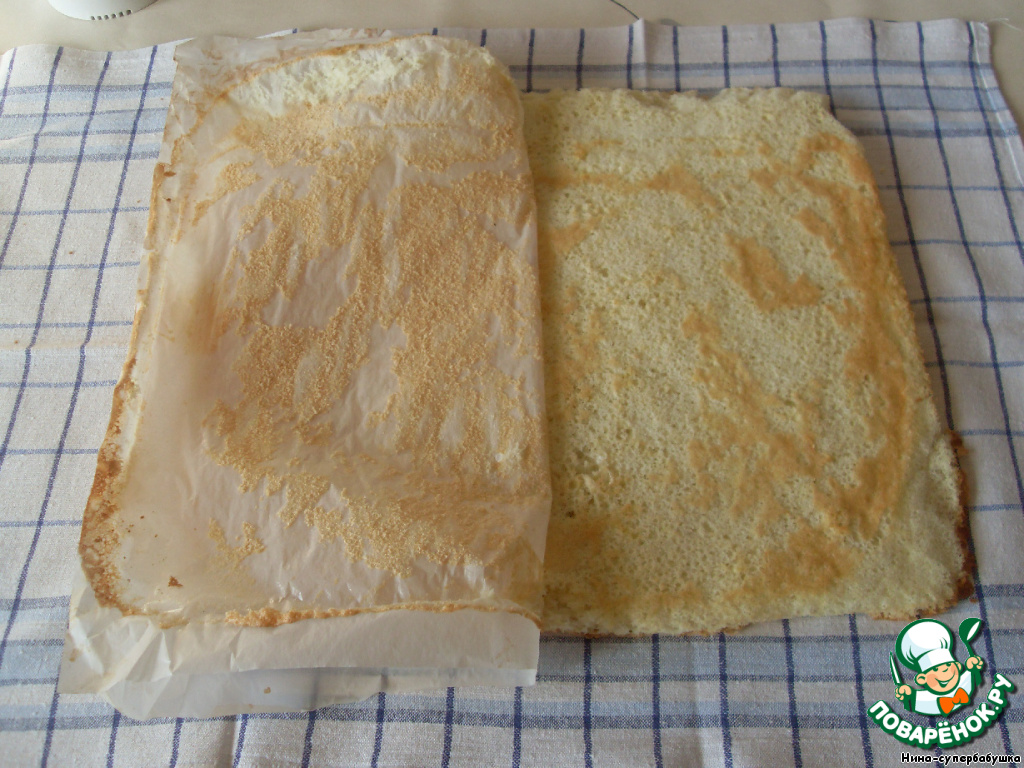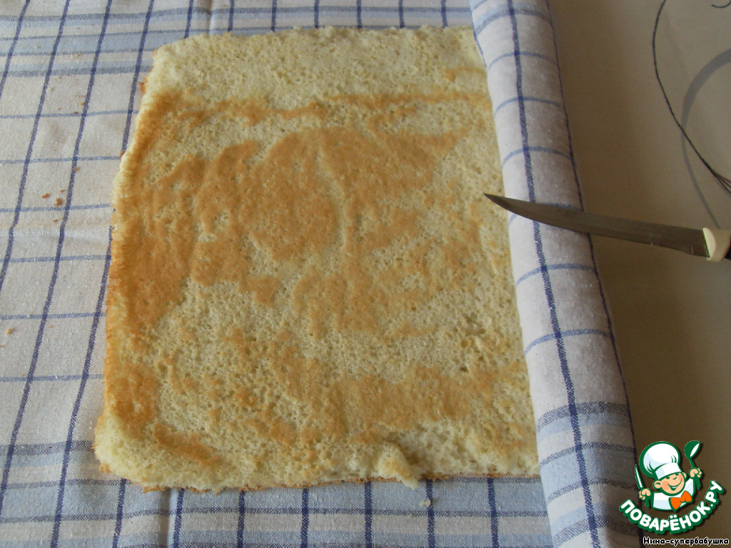 Корж немедленно свернуть в рулет вместе с полотенцем