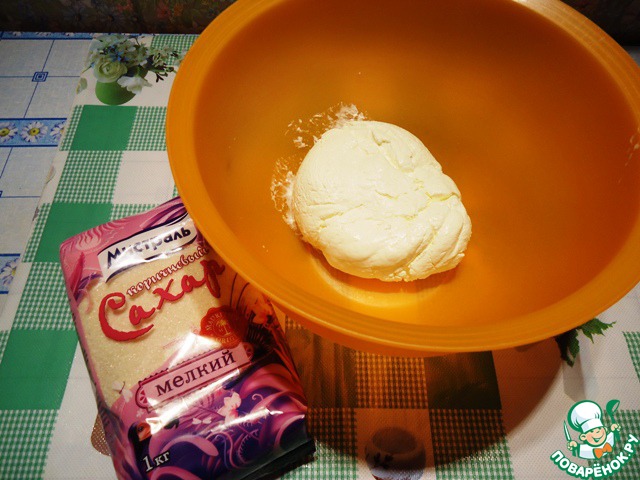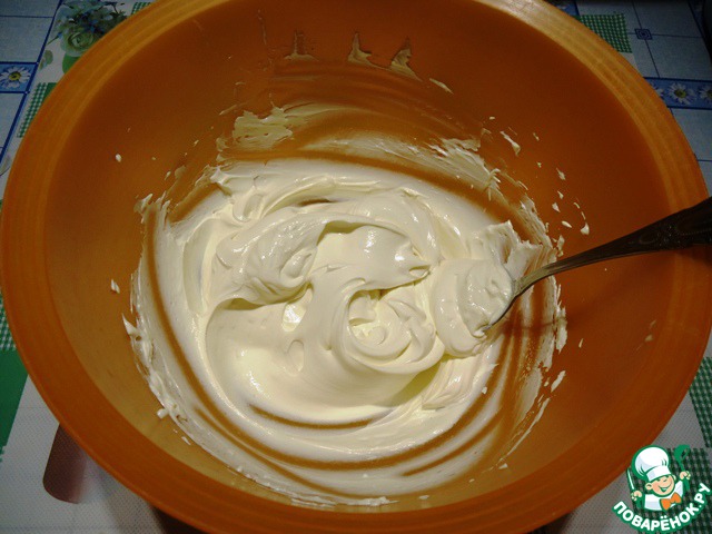Заранее, лучше с вечера, откидываем сметану на марлю, сложенную в несколько слоев, для удаления лишней жидкости. Оставляем сметану "стекать" на ночь. Должна получиться густая сметана.