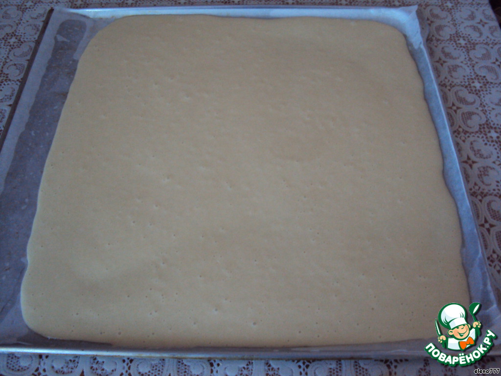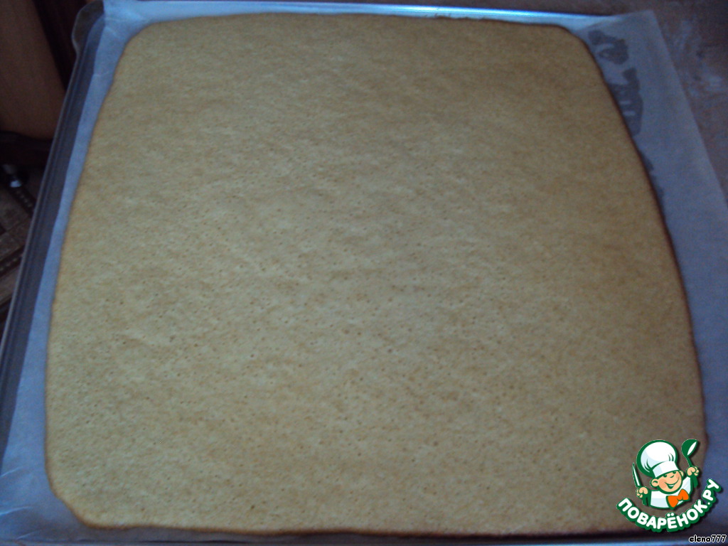 Как края коржа начнут слегка подрумяниваться, значит корж готов. Смотрите не перепеките, при сворачивании корж может полопаться!