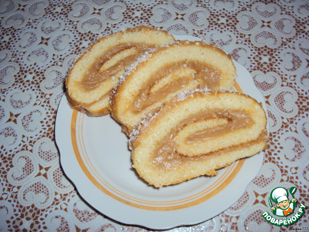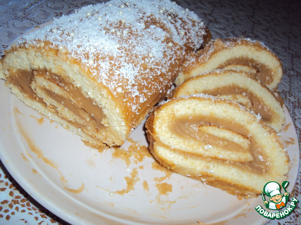 | Этот чудо-рулетик готовится легко и быстро - буквально за 15 -20 минут, а получается он нежный, ну, просто тающий во рту, с кокосовым ароматом и кремом из сливочных ирисок! |