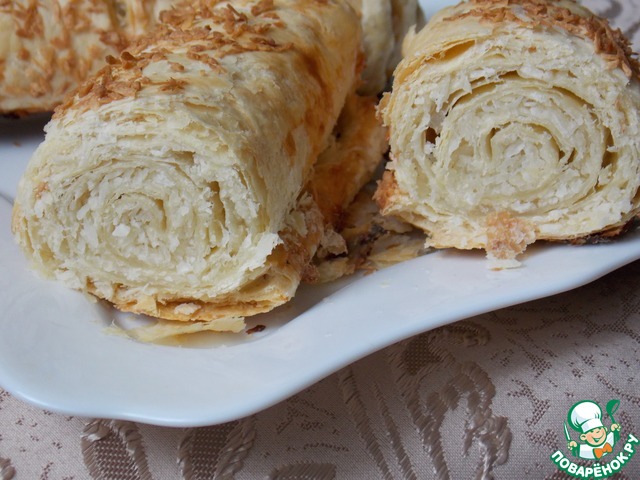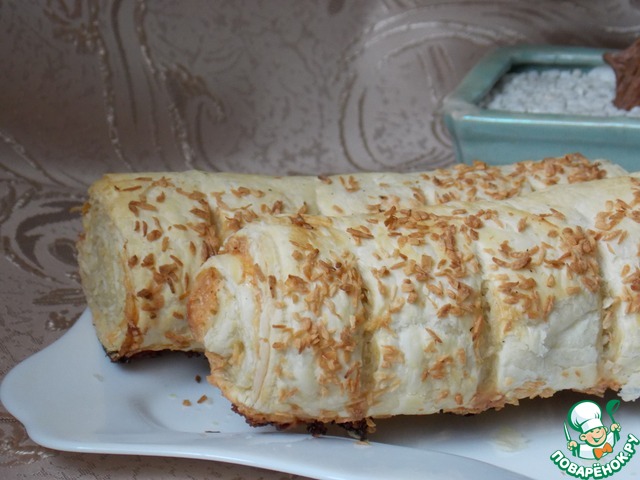 | Думаю, всем, кто любит слоеную выпечку и кокос, прийдется по вкусу этот простой в изготовлении, вкусный рулет. |