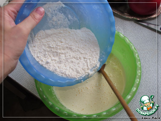 Яйца взбиваем с сахаром, добавляем кефир