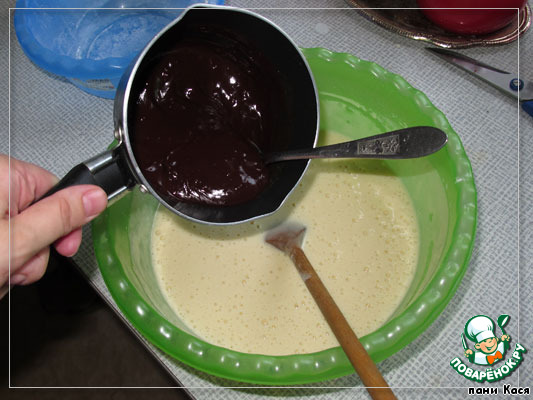 Растапливаем (но не завариваем! я второй раз заварила шоколад, было не очень) шоколад в молоке, добавляем