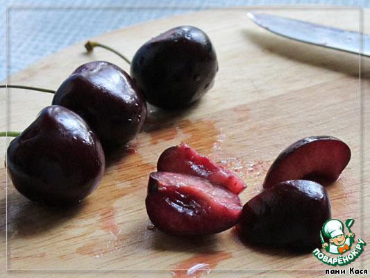 Тем временем режем черешню, убирая косточки само собой
