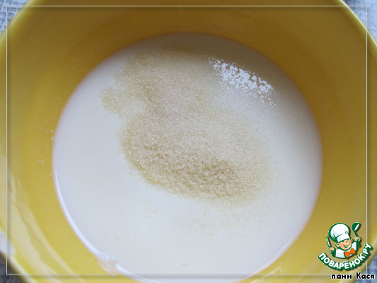 Остыл корж, замачиваем желатин в молоке.