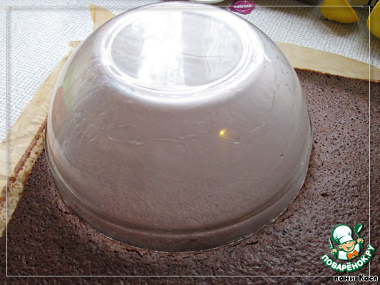 Вырезала миской круг из теплого коржа