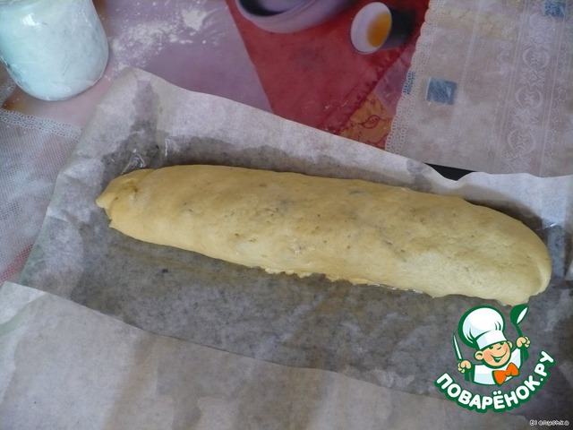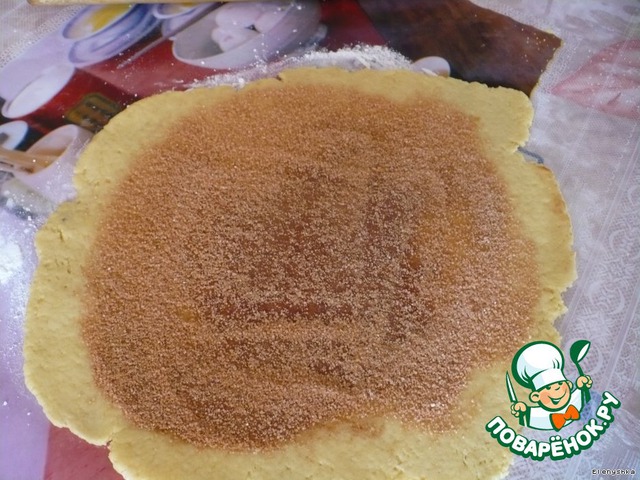 Посыпаем раскатанный кусок посыпкой,