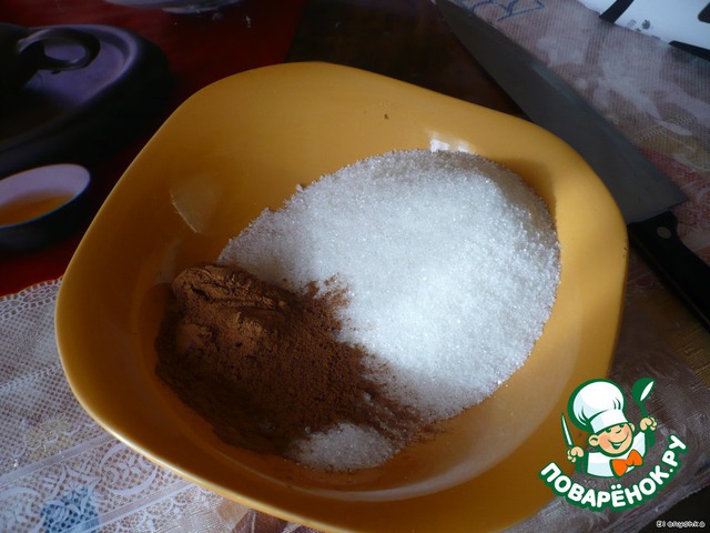 Делаем посыпку – перемешиваем сахар, корицу, лимонную кислоту,.