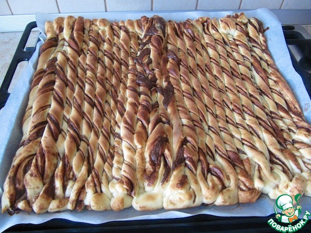 Противень застелить бумагой для выпечки хорошего качества. Каждую ленточку свернуть спиралькой и выложить на противень. Накрыть салфеткой и оставить для подъема минимум на 30-40 минут.