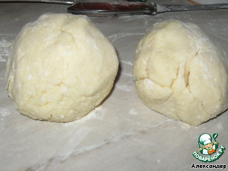 Разделить на два шарика и отправить в холодильник на 30 минут.