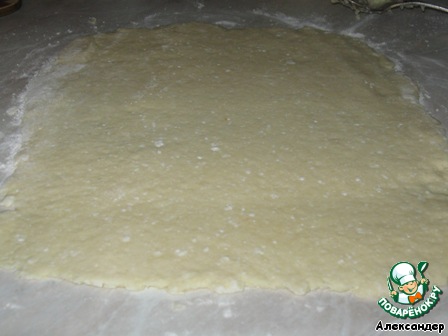 Мягкое масло растереть с сахаром, добавить творог, разрыхлитель и муку. Замесить тесто.