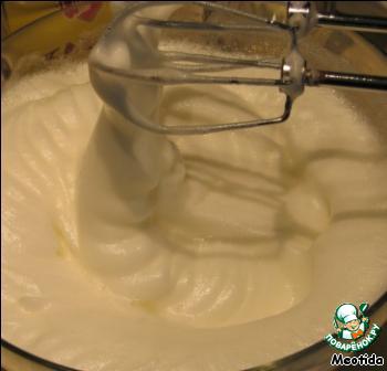 Белки взбиваем в стойкую пену с 4 ст.л. кипяченой холодной воды.
