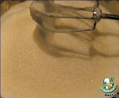 Добавляем сахар и ванильный сахар, хорошенько взбиваем миксером.