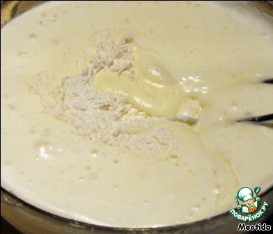Добавляем крахмал, муку с содой и еще раз хорошенько взбиваем.