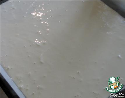 Противень застилаем бумагой для выпекания, смазываем маслом, выливаем тесто и отправляем в разогретую до 200С духовку минут на 15, до готовности (можно проверить спичкой).