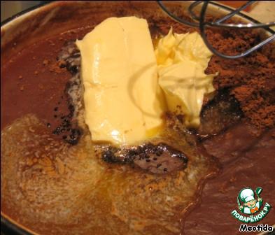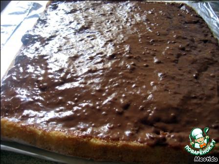 Глазурь приготовить из сахарной пудры и какао, постепенно добавляем коньяк или воду, ставим на огонь и слегка прогреваем, чтобы все крупинки растворились.