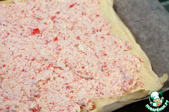 Для начинки: крабовые палочки разморозить и снять обертку.