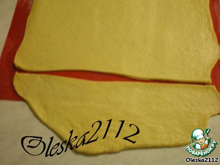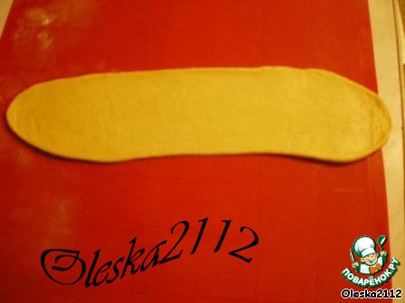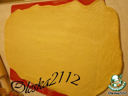 Тесто раскатываем в прямоугольный пласт приблизительно 25 см Х 40 см.