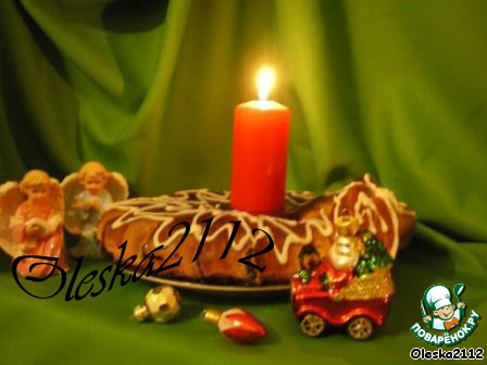 | Традиционный рождественский венок с четырьмя свечками, символизирующими свет, который озарит мир с рождением Христа – атрибут лютеранства, пришедший к нам из Германии... Традиционный рождественский венок со свечами располагают горизонтально – например, кладут на стол. Также венок (без свечей) вешают на стену или на дверь. Для примера, в Германии рождественский венок можно увидеть как в алтаре церкви, так и на обеденном столе. На улицах венки со светящимися огоньками украшают магазины и салоны, офисы фирм. Но я сегодня испекла рождественский венок из теста по старинному немецкому рецепту, взятому мной из немецкой книги "Brot und Brotchen". На конкурс "Новогодние вкусы планеты". |