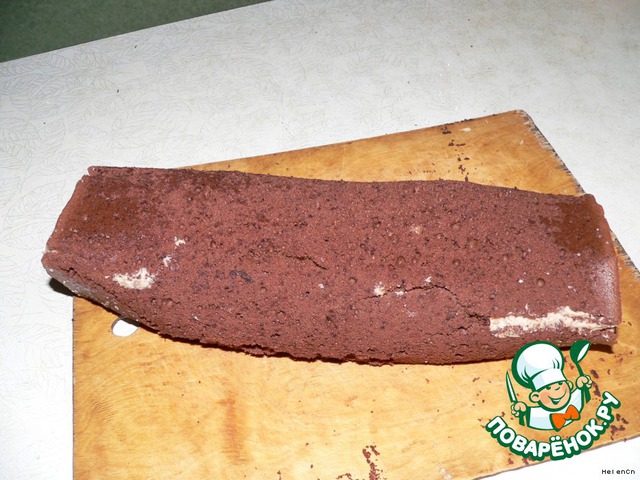 Рулет развернуть, промазать кремом и свернуть. Вот тут я немного напортачила. Получилось несколько трещин, но на вкусе это никак не отразилось.:-)