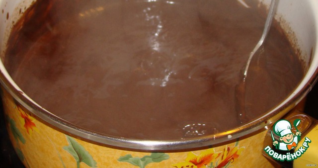 Помешивая дожидаемся полного растворения шоколада и загустения массы