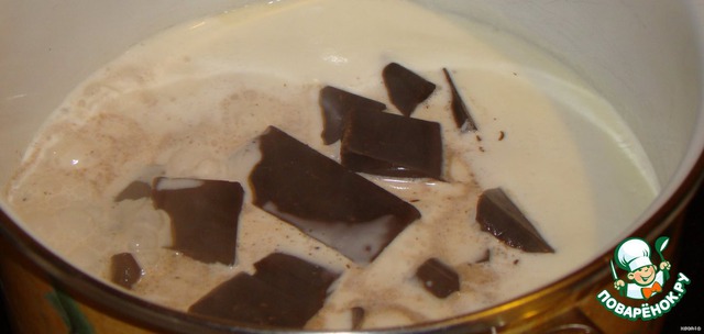 В закипевшие сливки кладем шоколад...(предварительно шоколад поломайте на части )