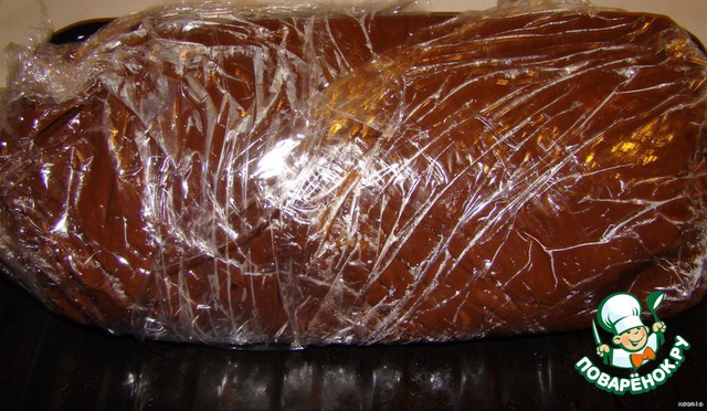 Бисквит выкладываем на пленку.....промазыаем половиной крема, сворачивая в рулет..оставшимся кремом, заливаем рулет...заворачиваем рулет в пленку...и ставим в холод..