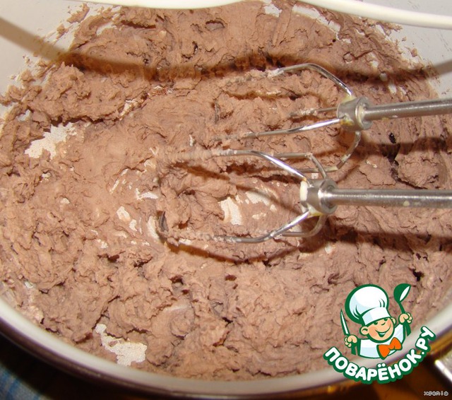 В Маскарпоне взбивая, добавляем кофе или какао И затем смешиваем марскарпоне с шоколадом...