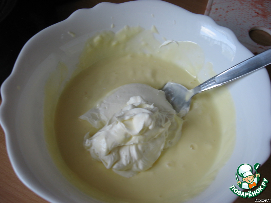 На этот раз я делала в два раза меньше, то есть брала в два раза меньше продуктов, чем я указала. Форма была примерно 35 на 25.