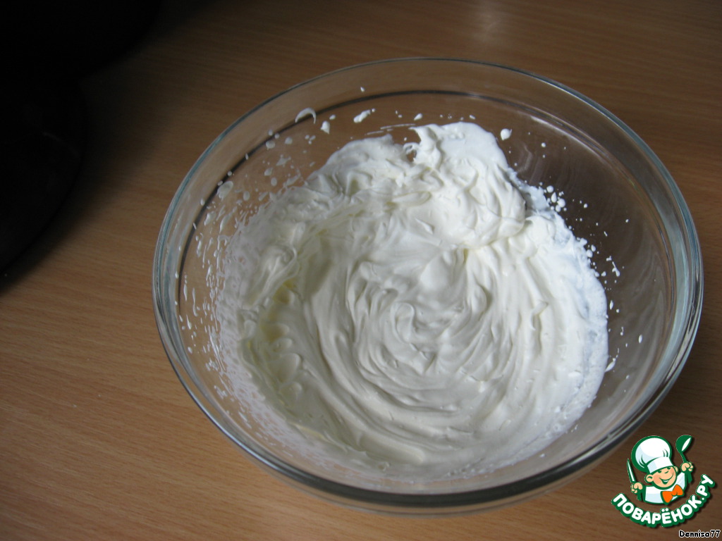 Взбиваем хорошенько 200 грамм сливок. Я беру всегда от Рама. Это самые лучшие сливки для взбивания. Взбиваются сразу и никогда не подводят. Это не скрытая реклама, а дружеский совет.))))