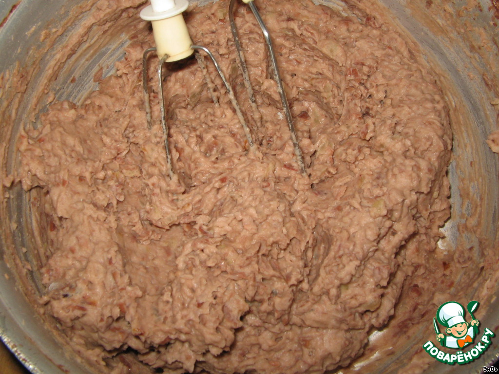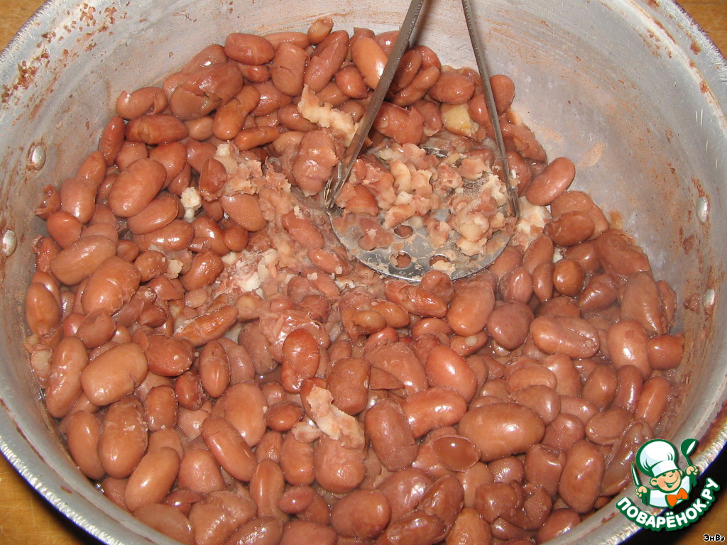 Фасоль отвариваем и разминаем пюрешницей, затем взбиваем миксером.