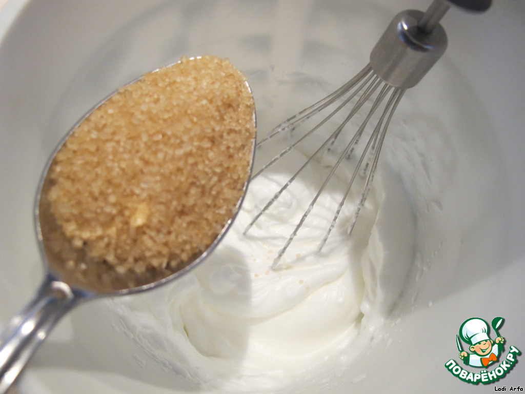Белки взбиваем с щепоткой соли и столовой ложкой коричневого сахара....