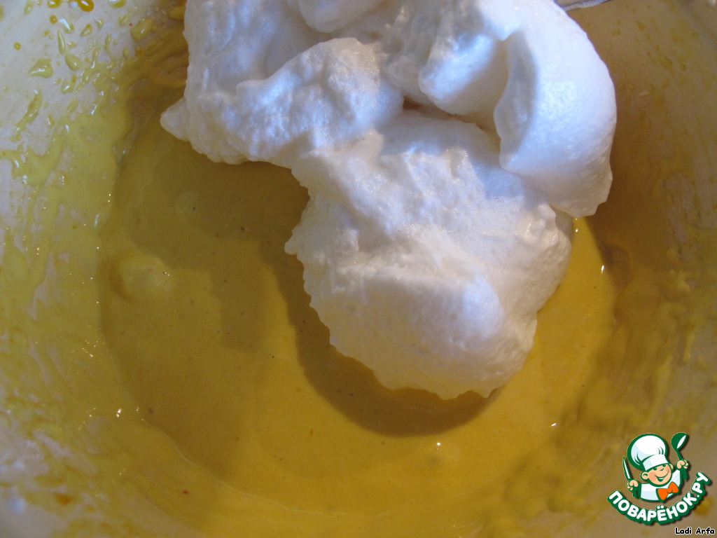 Нежно соединяем белковую и желтковую массы методом складывания. Масса должна быть пенообразной.