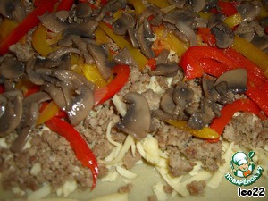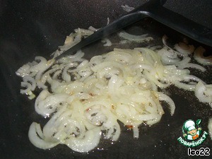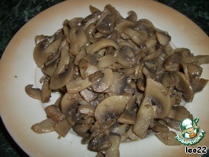 Пока тесто выстаивается готовим начинку. Режем и обжариваем шампиньоны.